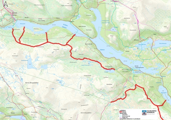 Arbetet med att ploga bilvägen har påbörjats och i samband med det görs djupa hål i snön (3–4 meter) för urgrävningar till vägtrummor och annat. Skoterleden, som följer Vildmarksvägens sträckning, stängs därför av säkerhetsskäl.
